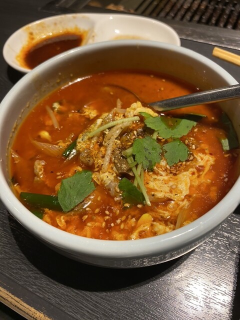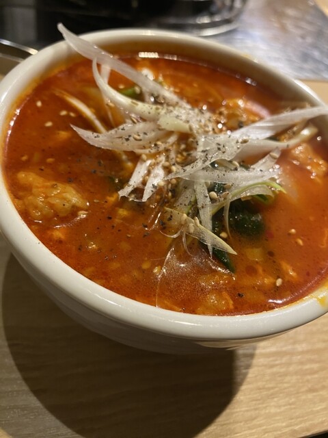ユッケジャンラーメン!うまい!けど、麺がたぶん袋麺だった!!!ご愛嬌。
