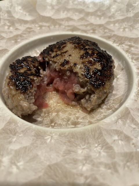 ランチコースをいただいたが、肉に始まって最後まで肉尽くし。特にハンバーグが食べたくて行ってみたが、レアな焼き加減は当然柔らかく、肉汁溢れ、旨味充分で、一口ご飯を混ぜていただくと絶妙なバランスが口いっぱいに広がる。