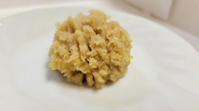 一般的なきんとんが、籐製の通しを使うのに対し、嘯月のものは馬尾を編んだ毛通しを使用して網目が籐製よりもずっと細かいために、素材を濾したときの仕上がりが、繊細になるらしい。