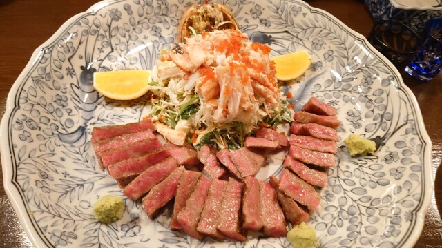 カニサラダと仙台牛サーロインもヤバいな!