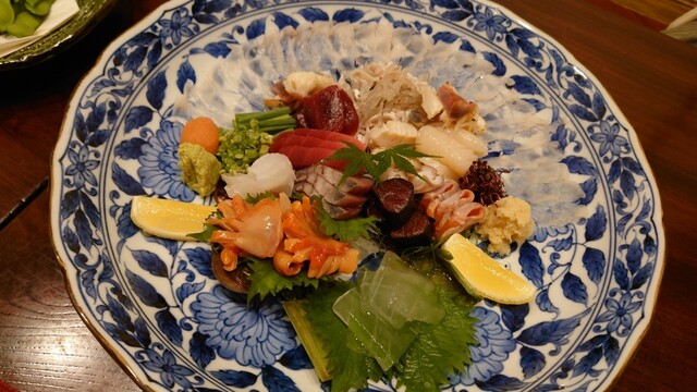 まずは天然とらふぐの刺身。