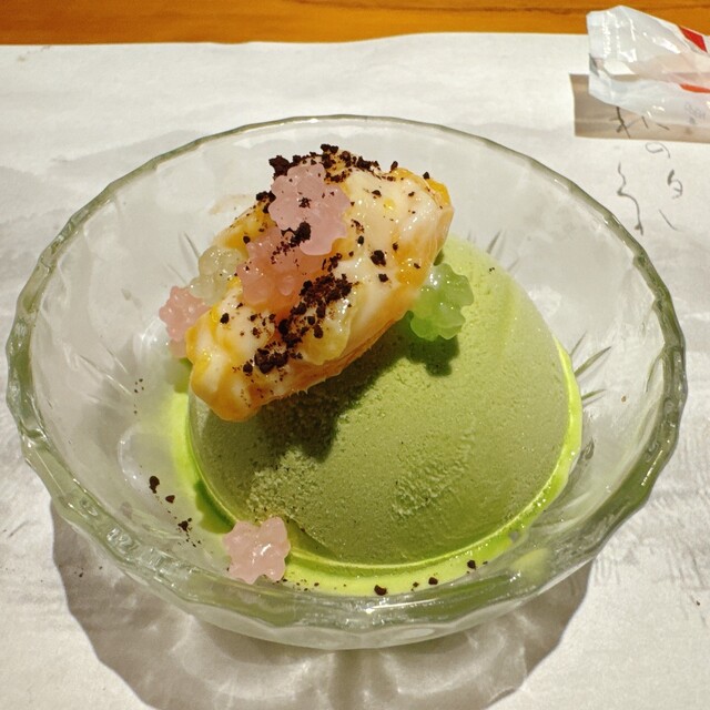 山わさびをガバッと乗せて、大将が出来立てのメレンゲを乗せてくださいます!