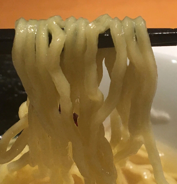 麺は京都“棣鄂”さんの縮れのある中細麺で、加水率は低めで、小麦の風味を楽しめます(*´-`)
