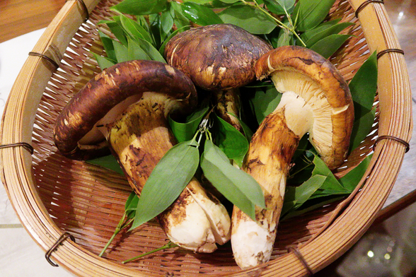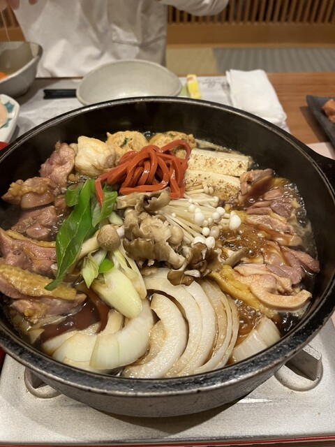 松茸と近江軍鶏の雄と雌のすき焼き鍋のスペシャルコースを楽しむ