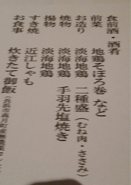 初回訪問は2014年。琵琶湖西岸にある養鶏生産者のお店です。初回は"地鶏すき焼コース"をいただいて、あまりパッとしない印象だったのですが、今回1日6名限定の"淡海地鶏プレミアム"をいただくことで、穏座...