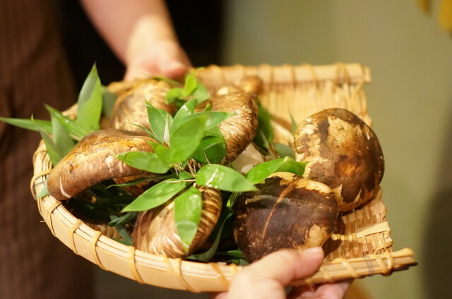 松茸と近江軍鶏の雄と雌のすき焼き鍋のスペシャルコースを楽しむ