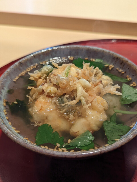 特に赤座海老の天ぷらが最高だった。季節の移ろいも感じつつ美味しい天ぷらを。