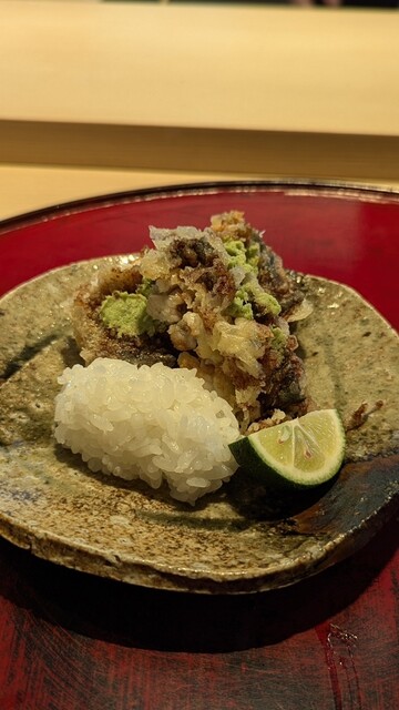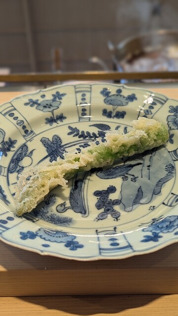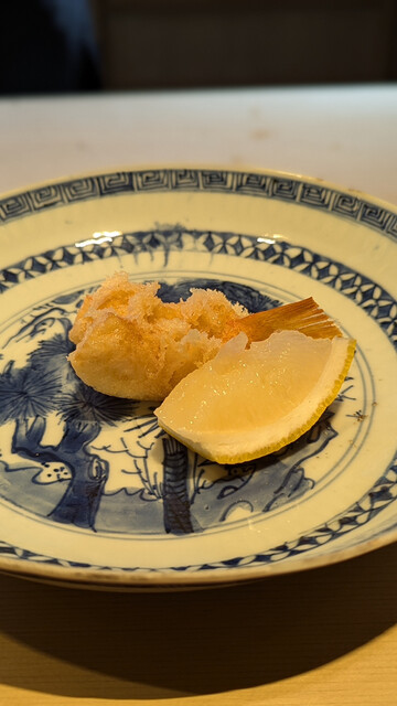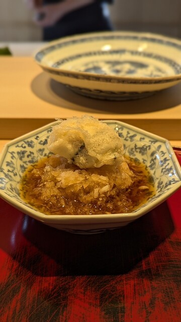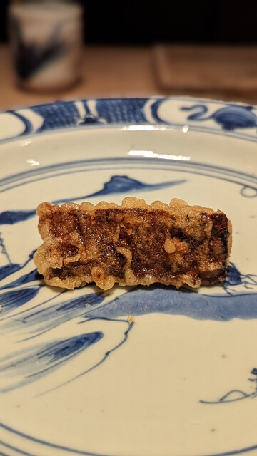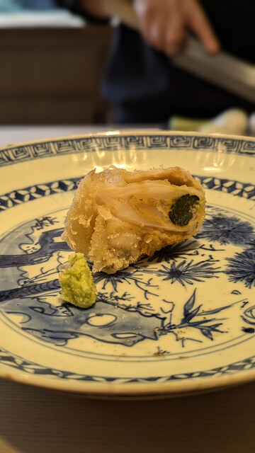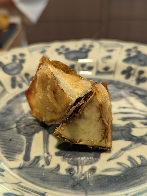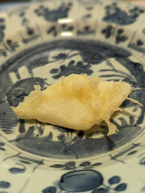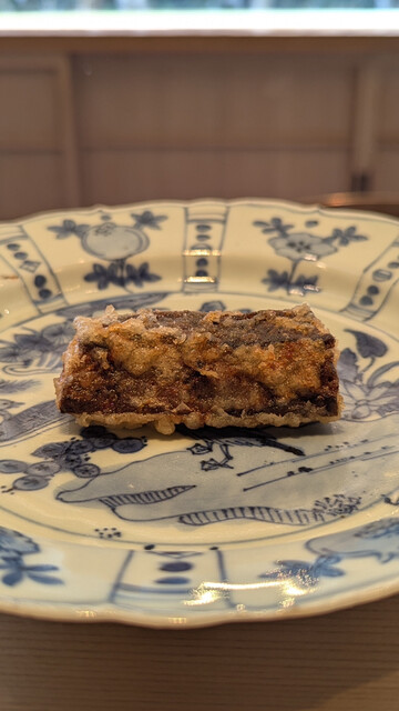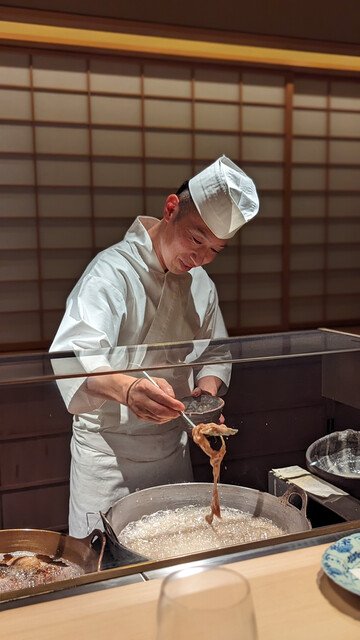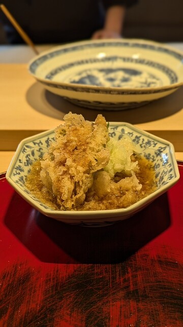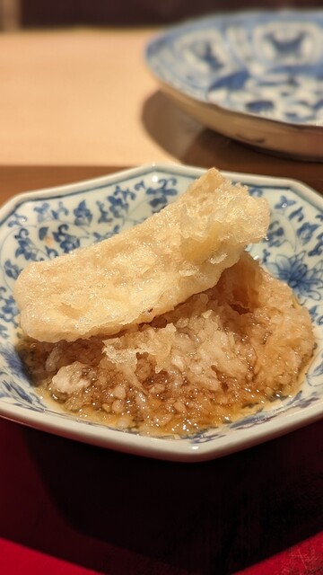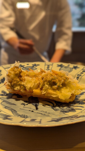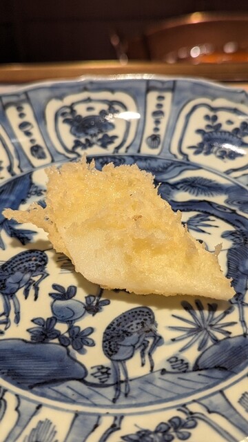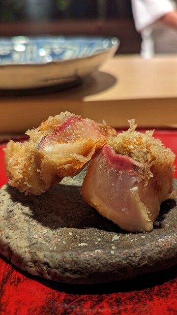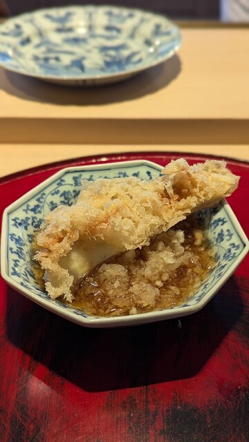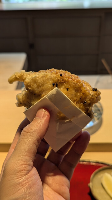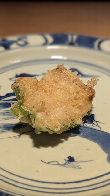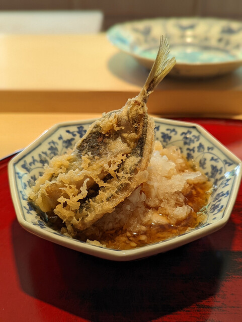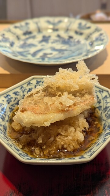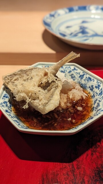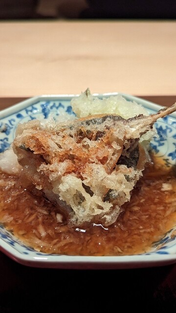 日本海側と違い味の味が濃く脂もバランス良く天ぷらにするとかなり美味い。中心に熱が通ったタイミングで揚げる素晴らしい脱水と火入れの技術を堪能。