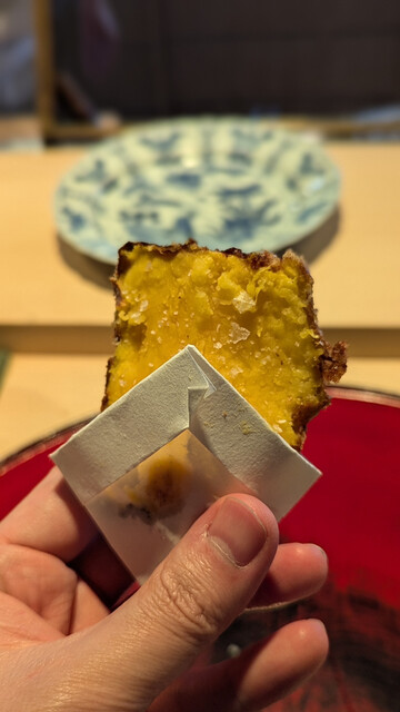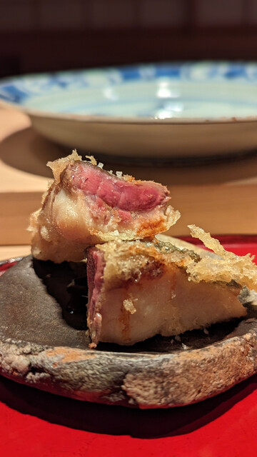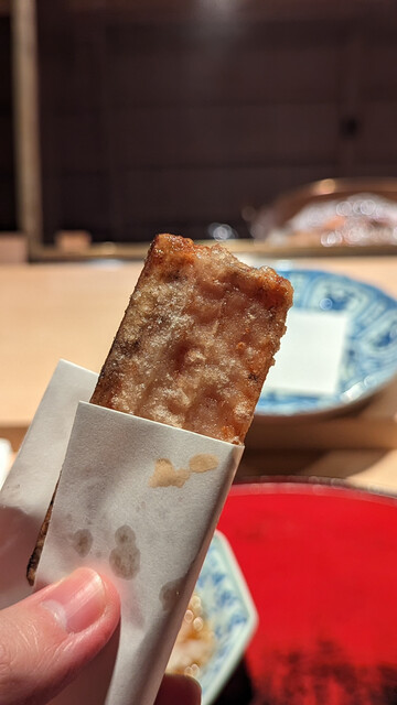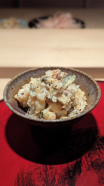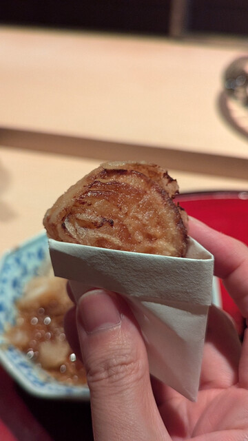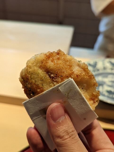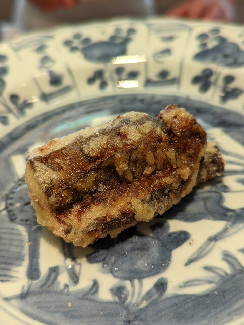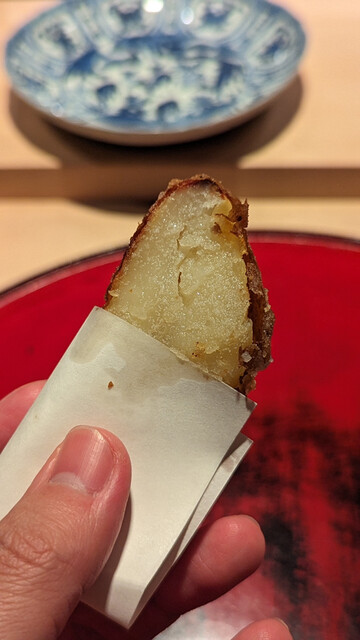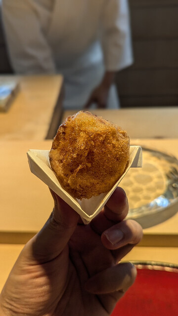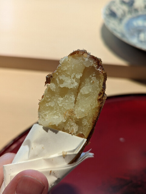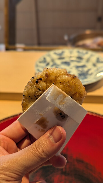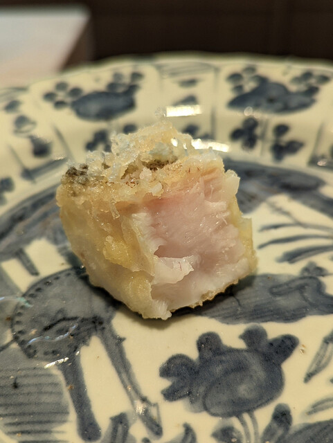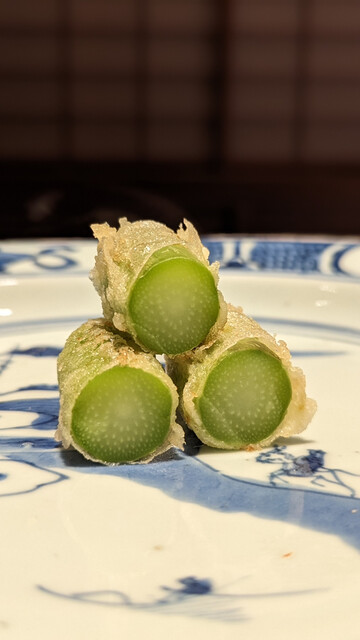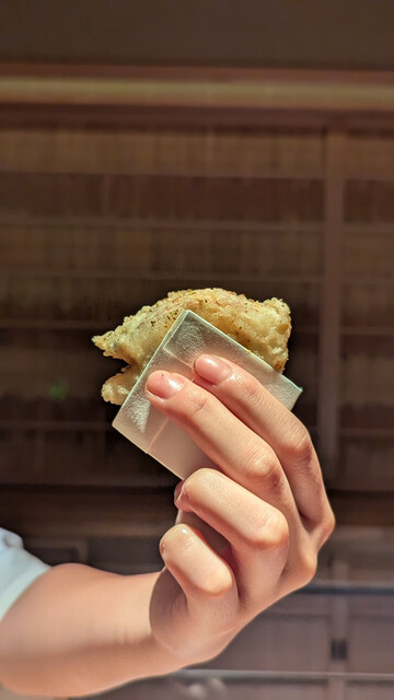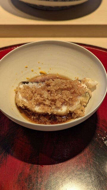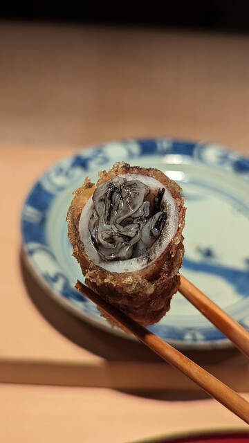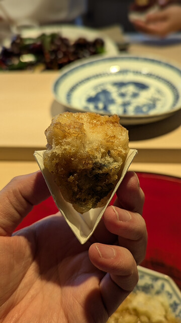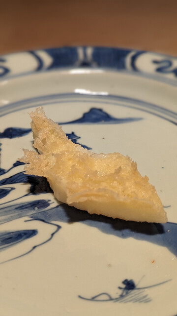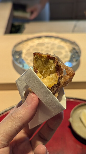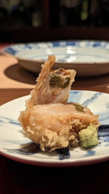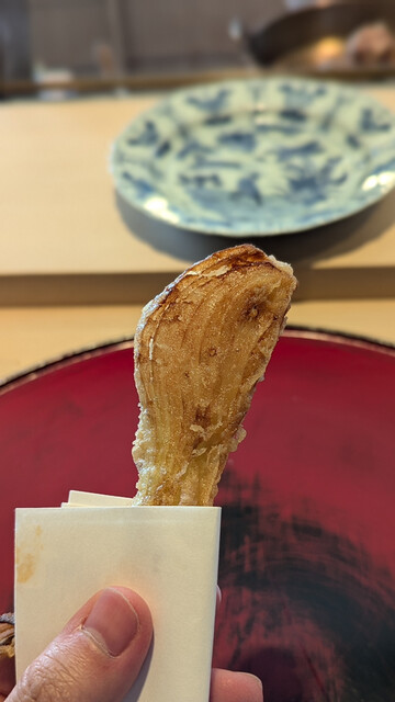 日本海側と違い味の味が濃く脂もバランス良く天ぷらにするとかなり美味い。中心に熱が通ったタイミングで揚げる素晴らしい脱水と火入れの技術を堪能。
