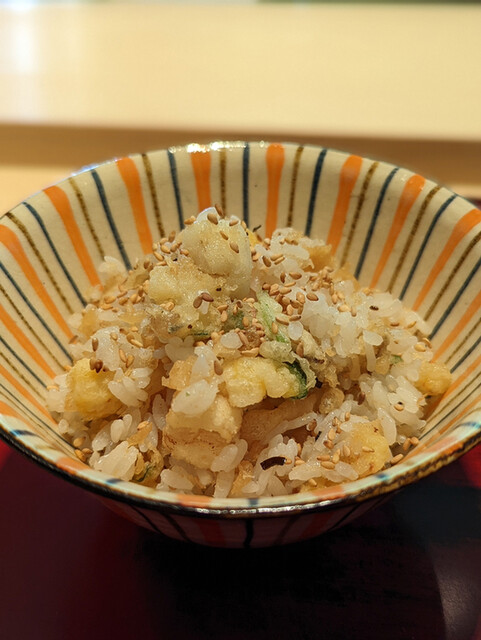 〆は何品頼んでもいいとの事だったが、かなりボリュームあるコースなので殆どの方は途中から天ぷらを小さくするか〆も1品にされていた。〆まで美味しい!天バラも天茶も素晴らしい美味しさ。
