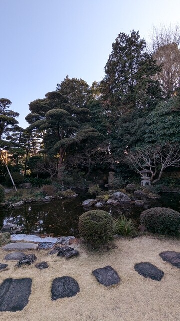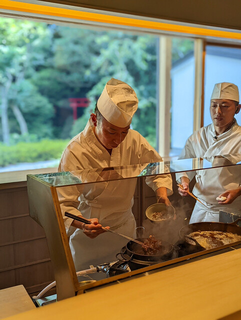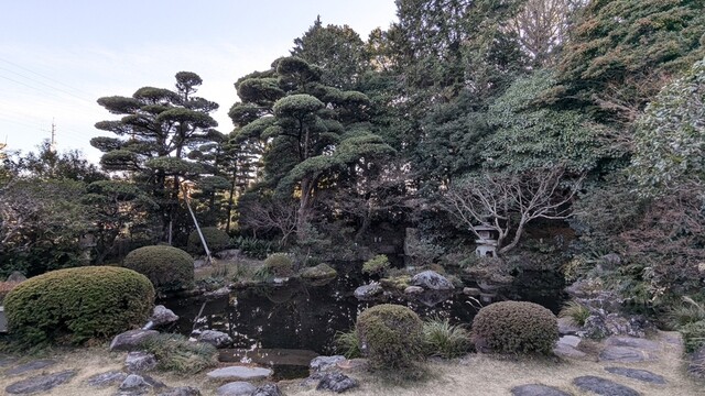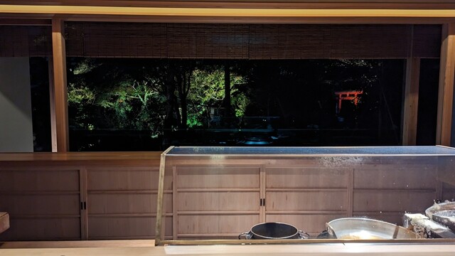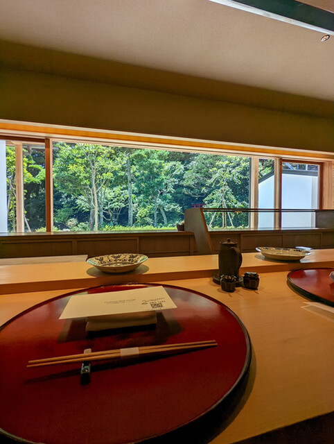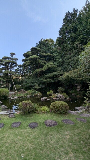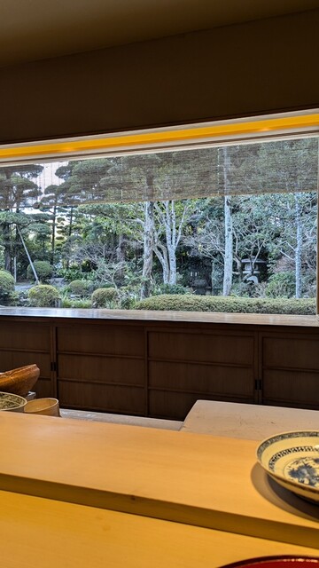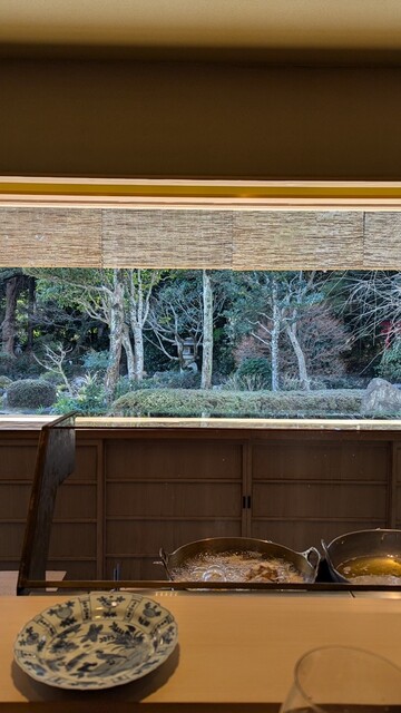 静岡駅北口からタクシーで10分ほどの距離にある店舗で静岡浅間神社に隣接しており500坪の美しい日本庭園が眺められる。