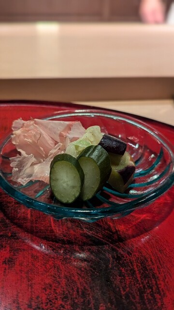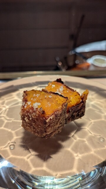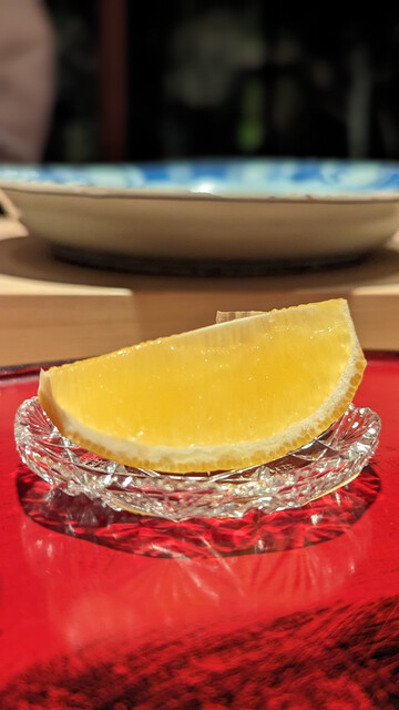 夏の終わりに近づく素材で今回も静岡の魚と野菜の美味しさを堪能。後半の甘鯛、赤むつ、鰻と脂が続くところもスパイスや山葵を合わせたり火入れで脱水を工夫して全く重くならない志村さんの凄技を堪能。