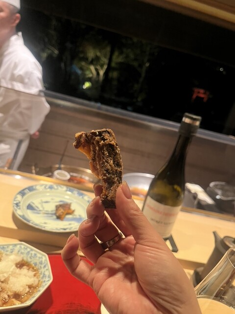 他にも蓮根、ごぼう、カボチャと天ぷらの素材で好きな上位野菜につきこの日は本当に奇跡的なラインナップでした。ワインも合うのをセレクトしていただきましたが、どちらも本当に美味しかった。