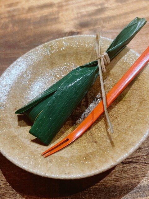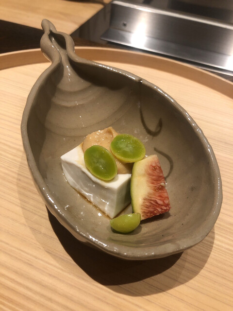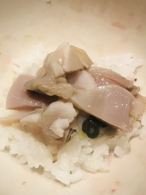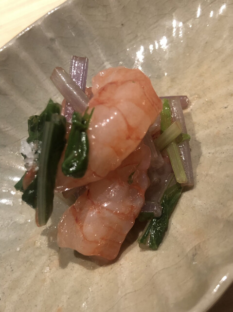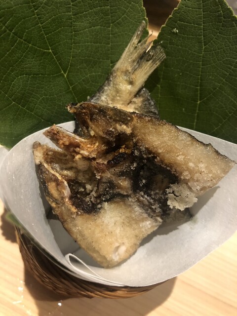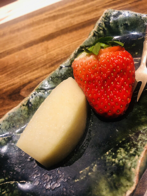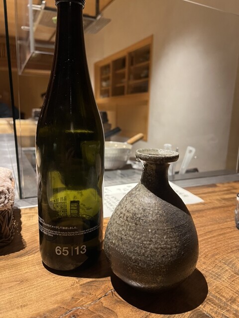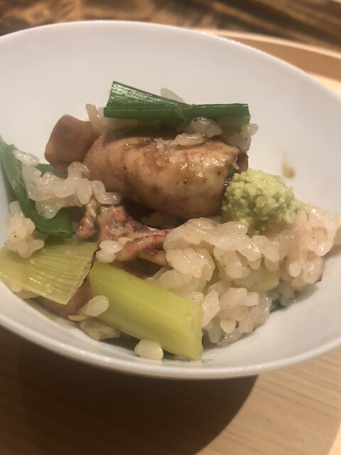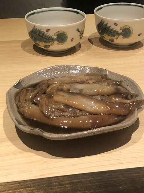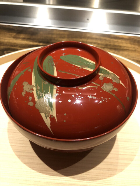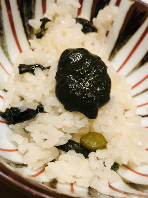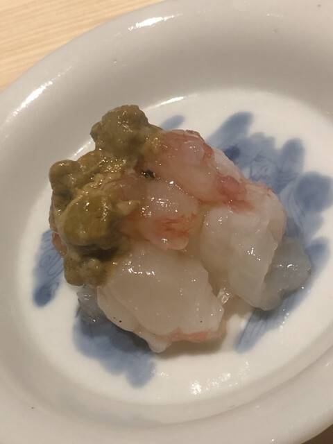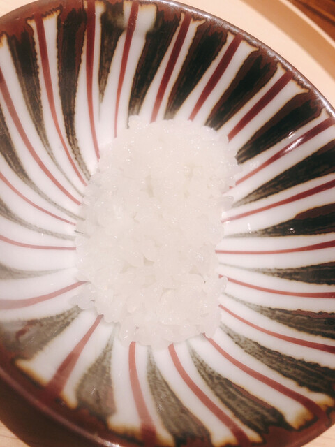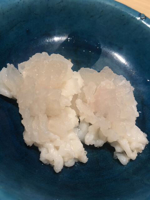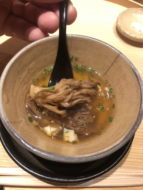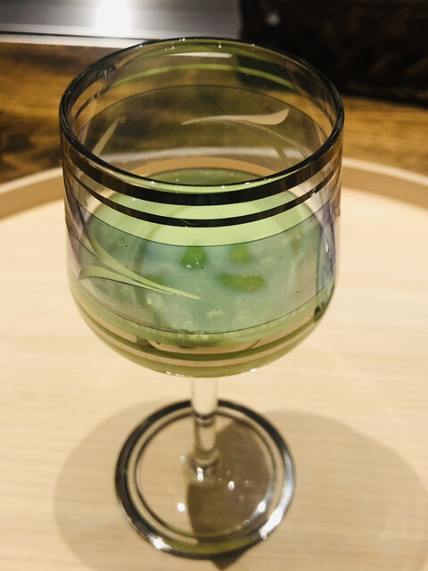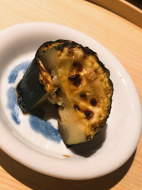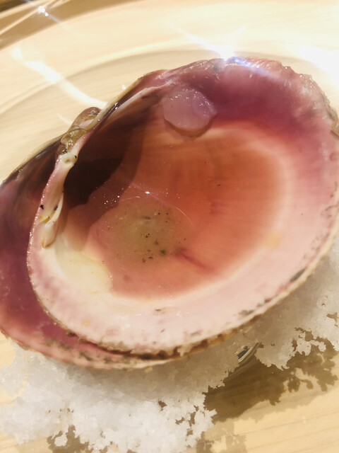 静岡県の奥山から届いた自然薯を卵白とともに蒸して、生唐墨の塩味でいただきます。でもそれだけでは有りません。その自然薯の皮を炭火で焼いて、深山の土の香りを添加しました。お出汁の旨味が静かに寄り添い、ワガママな舌も胃も歓喜の波に飲み込まれました。完全無比のスターターです。
