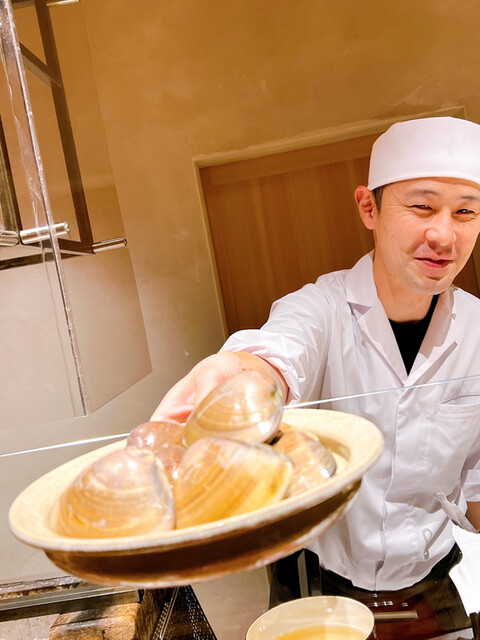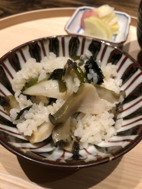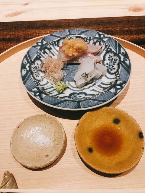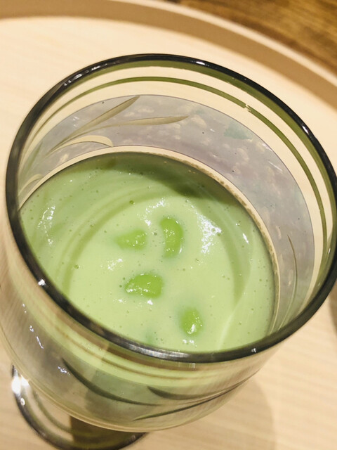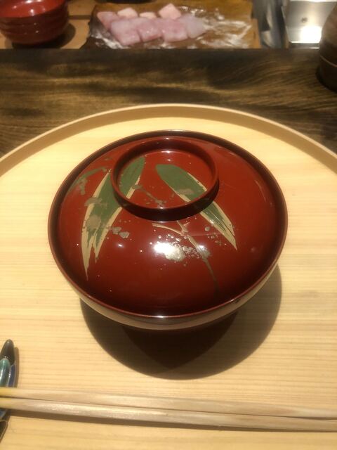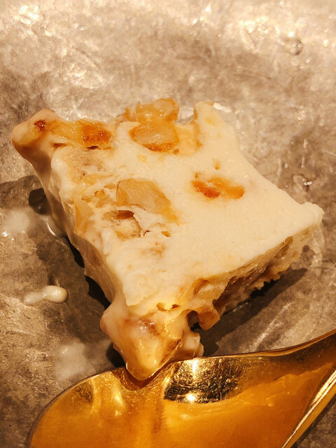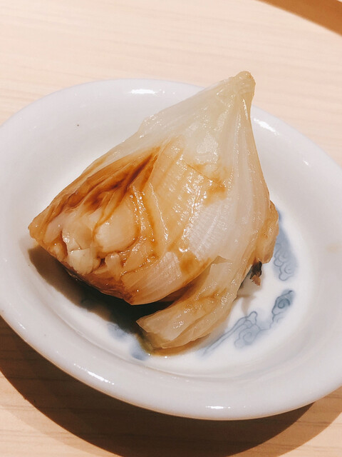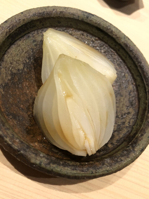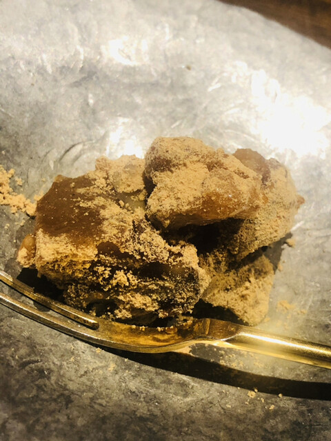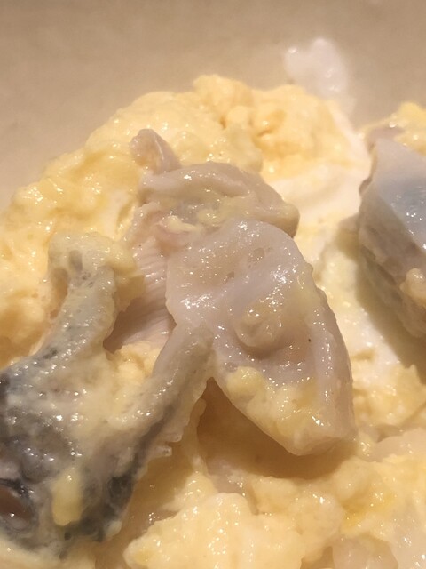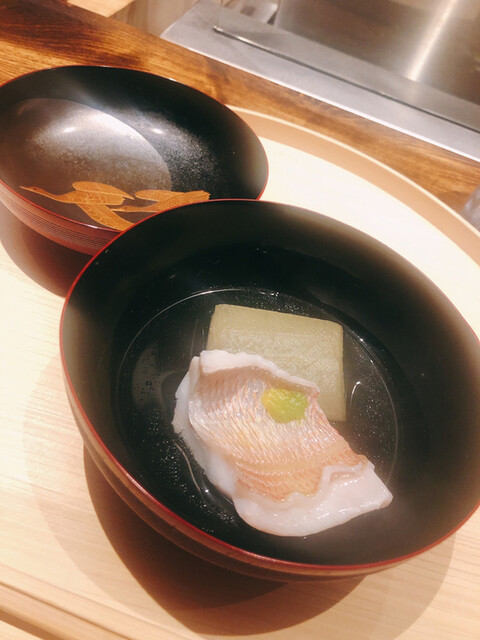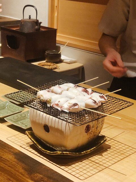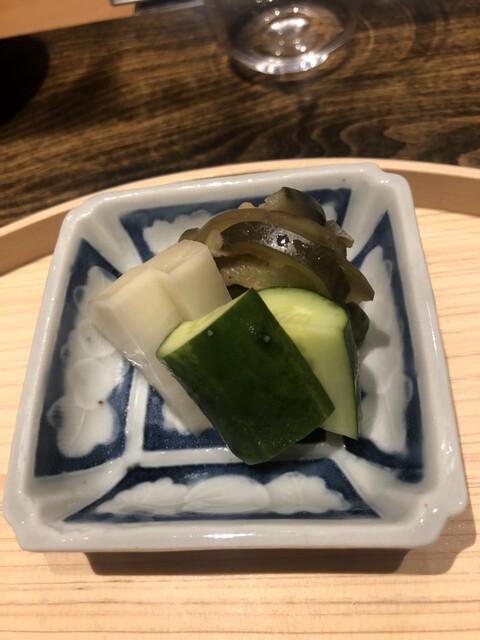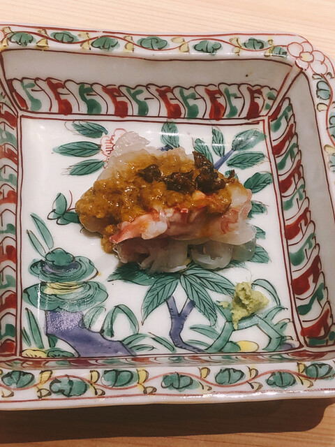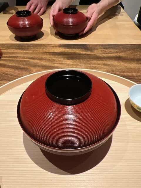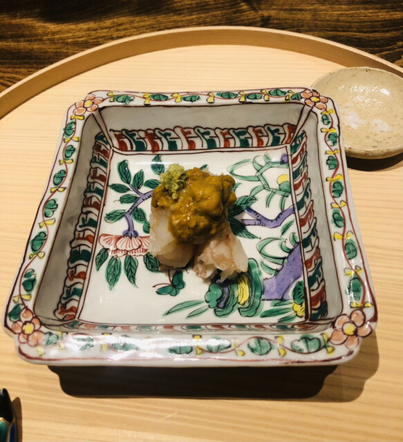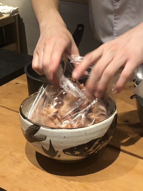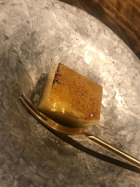 静岡県の奥山から届いた自然薯を卵白とともに蒸して、生唐墨の塩味でいただきます。でもそれだけでは有りません。その自然薯の皮を炭火で焼いて、深山の土の香りを添加しました。お出汁の旨味が静かに寄り添い、ワガママな舌も胃も歓喜の波に飲み込まれました。完全無比のスターターです。