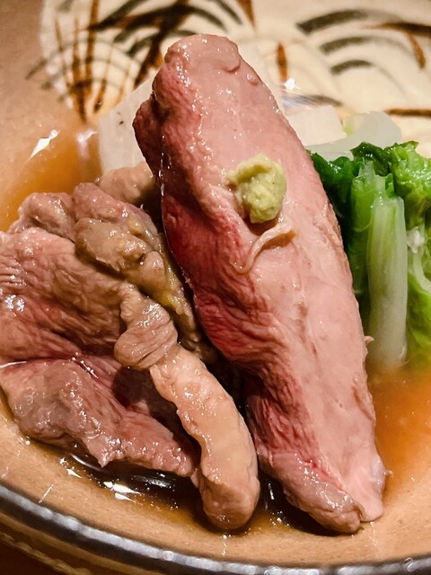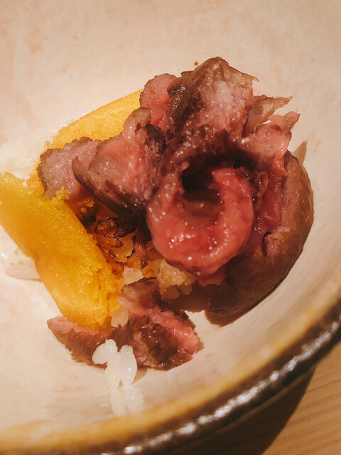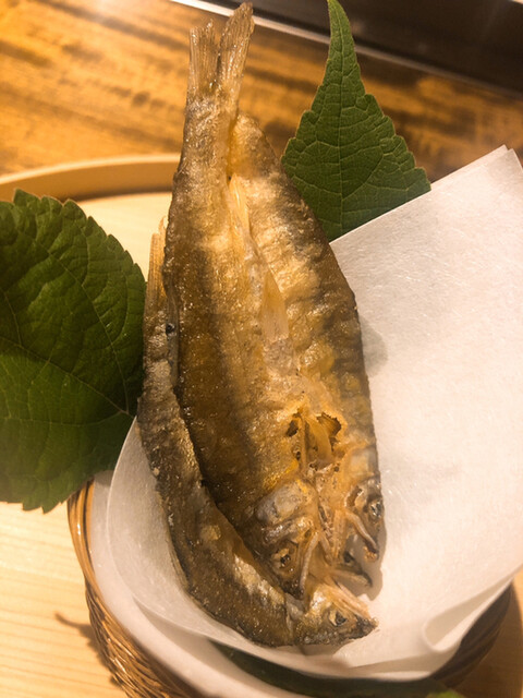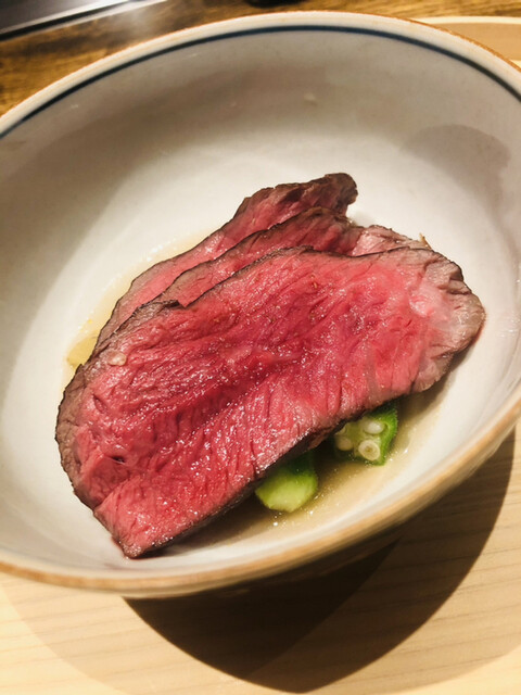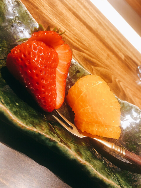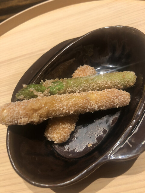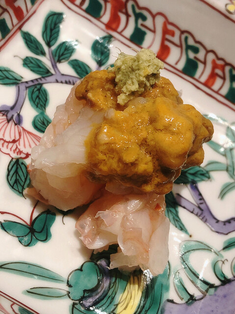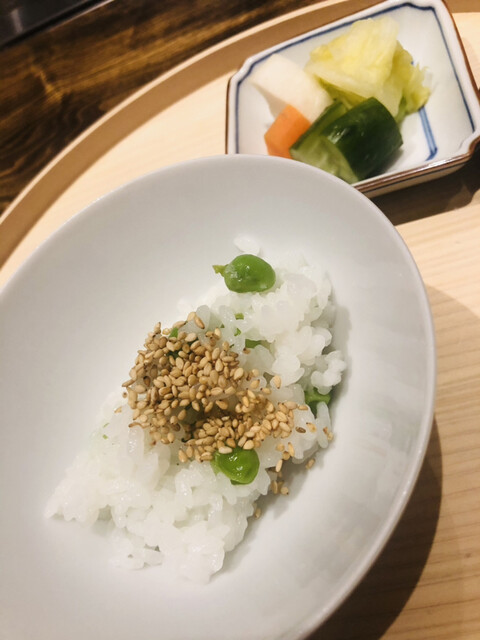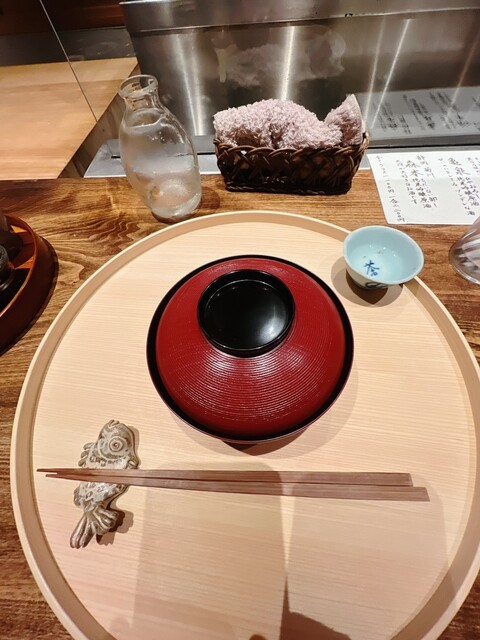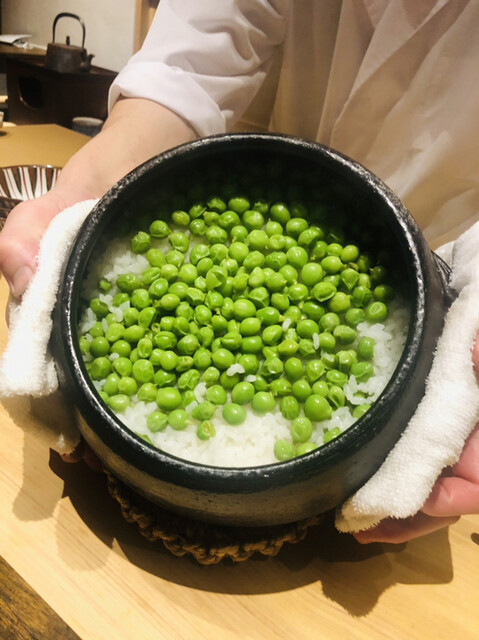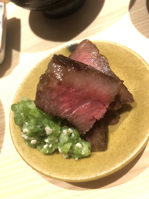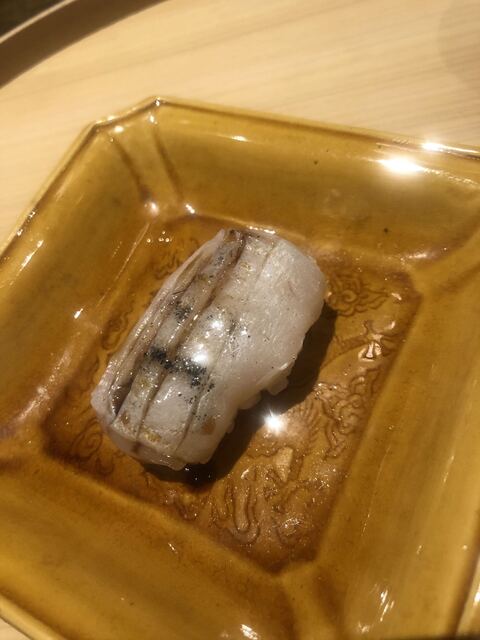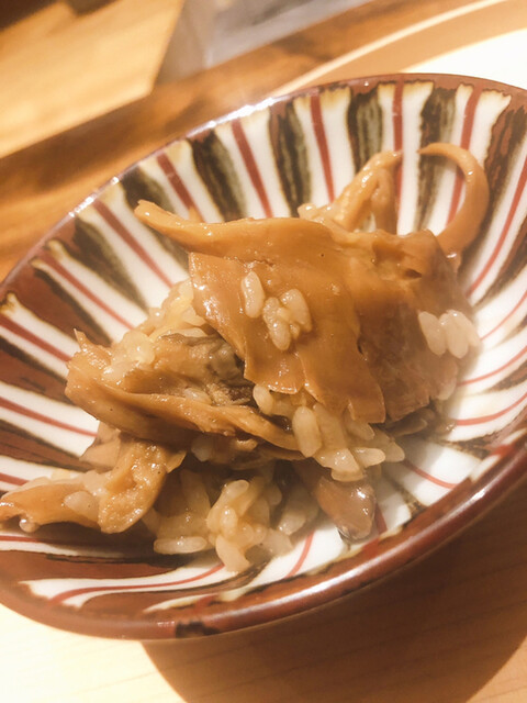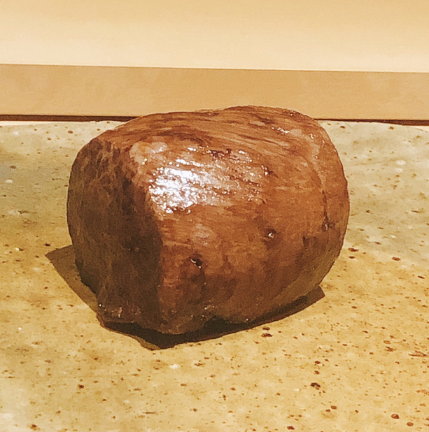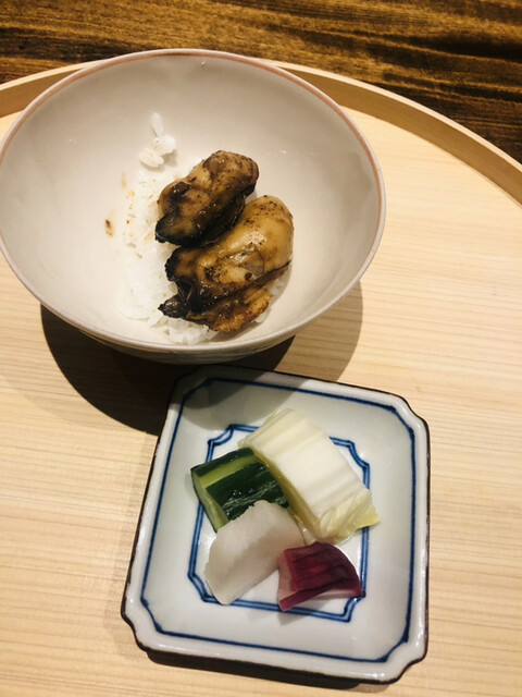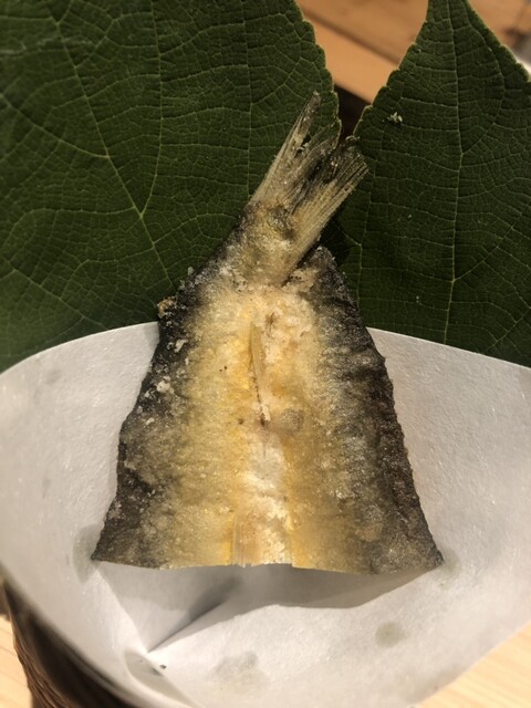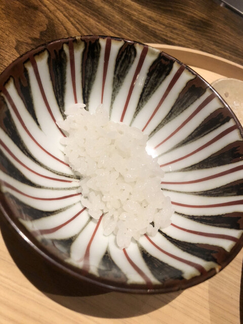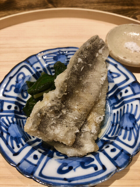 静岡県の奥山から届いた自然薯を卵白とともに蒸して、生唐墨の塩味でいただきます。でもそれだけでは有りません。その自然薯の皮を炭火で焼いて、深山の土の香りを添加しました。お出汁の旨味が静かに寄り添い、ワガママな舌も胃も歓喜の波に飲み込まれました。完全無比のスターターです。