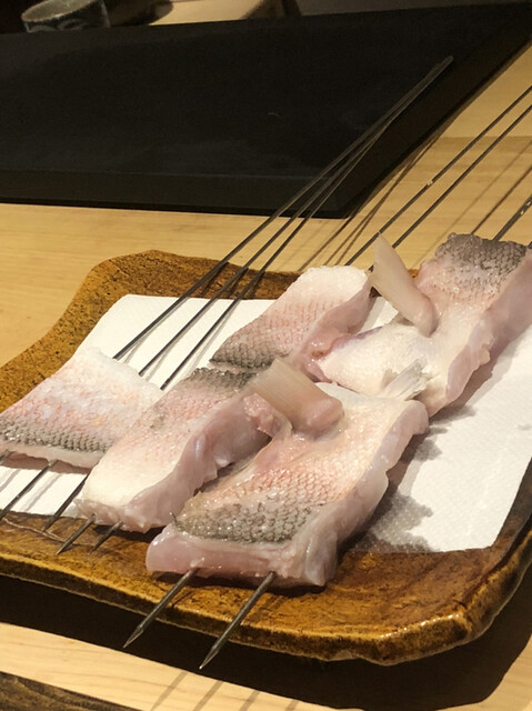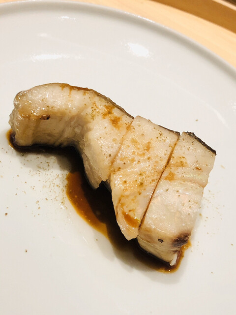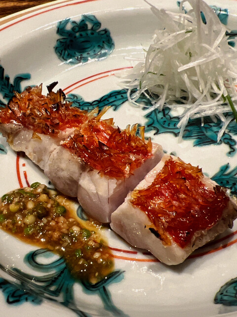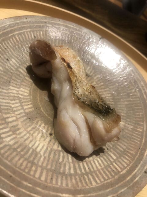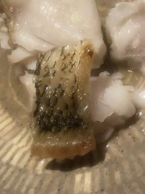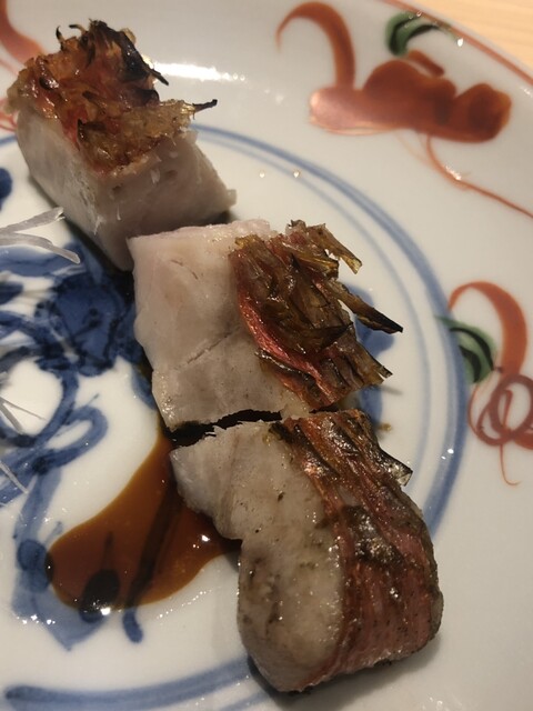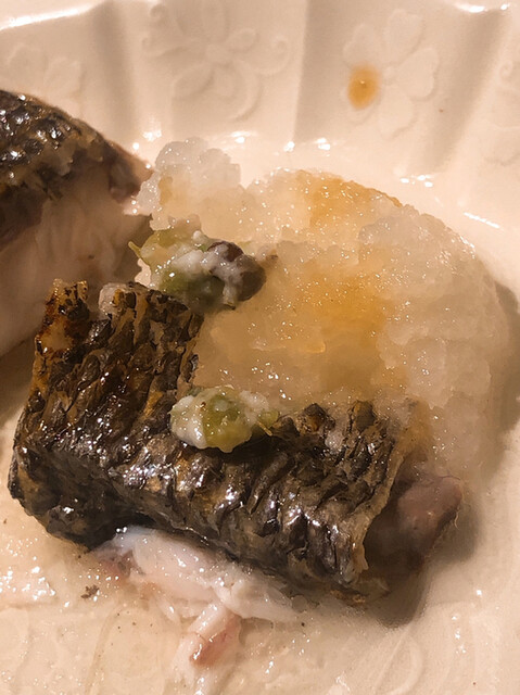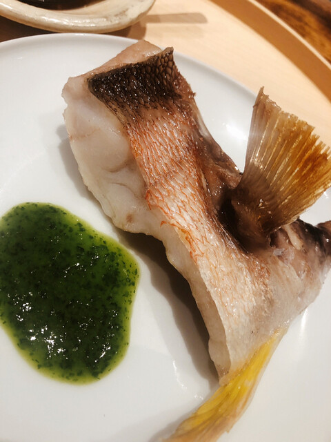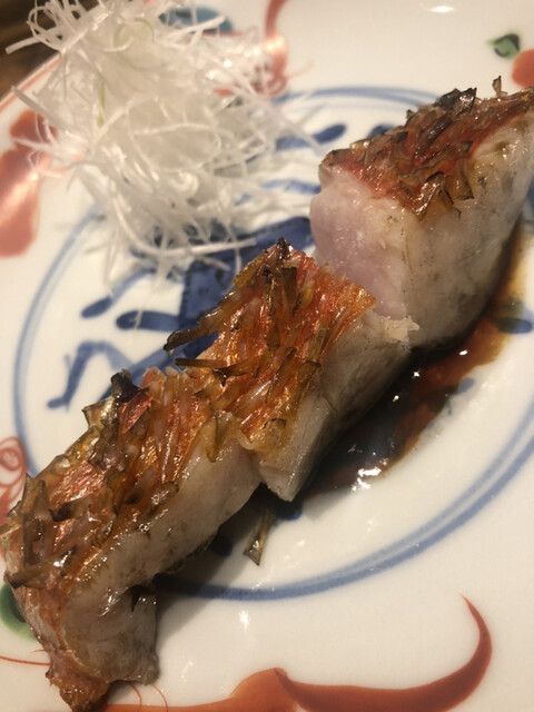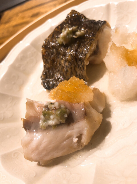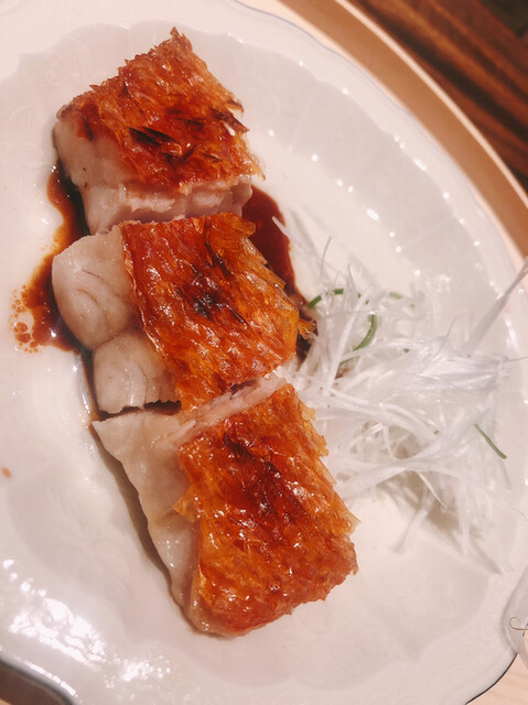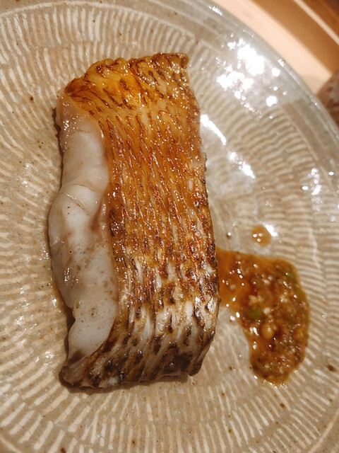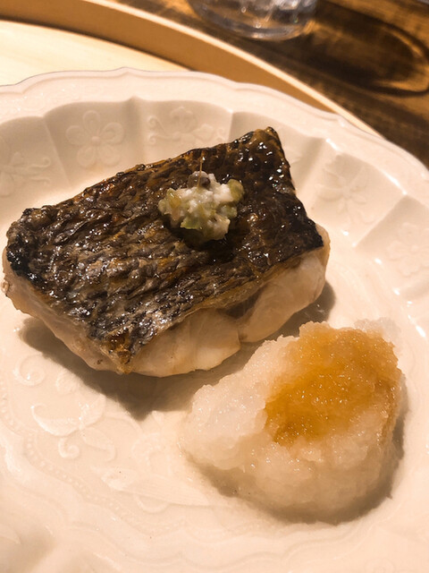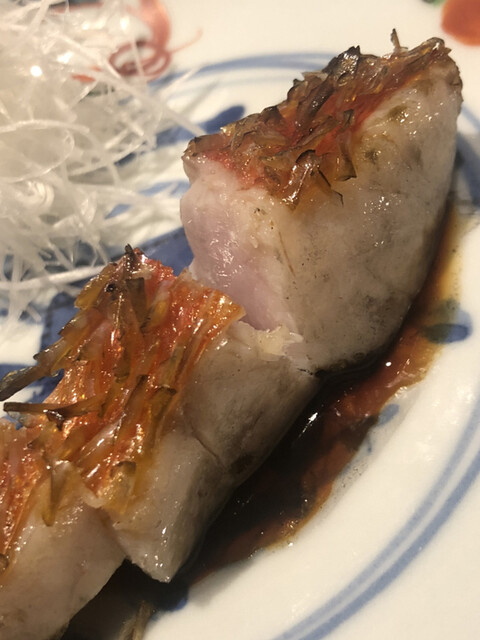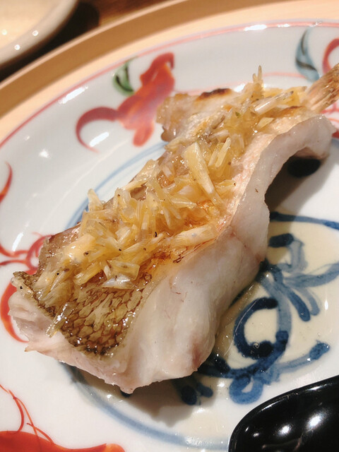 金目鯛の炭火焼き。スペシャリテです。松笠を炭火で仕上げているので、他店の太白回しかけと比べてしつこく無い