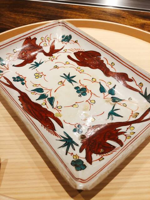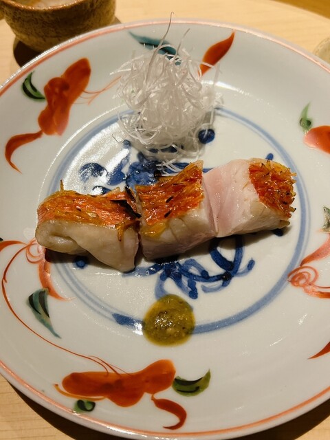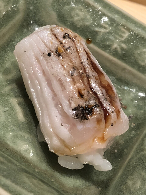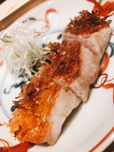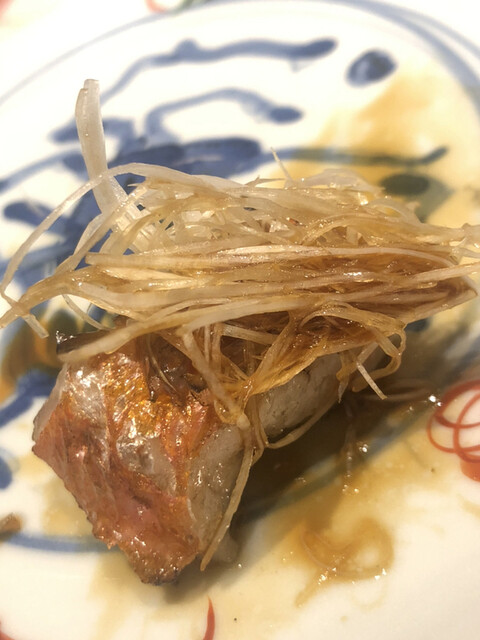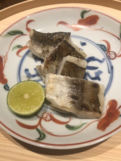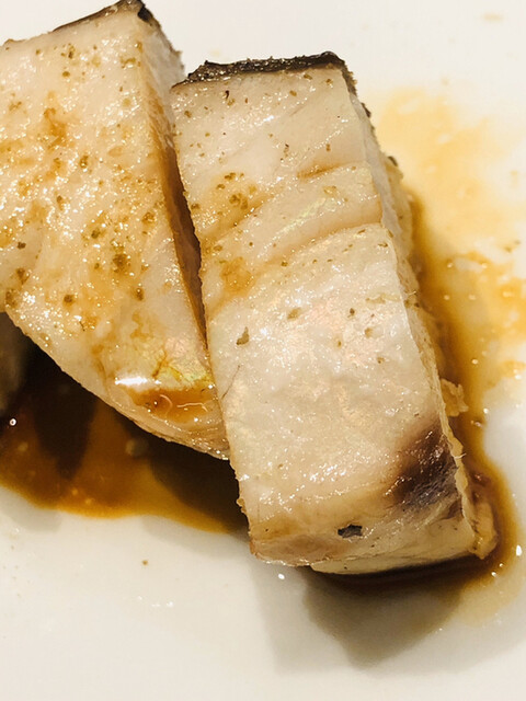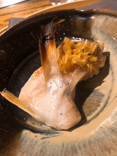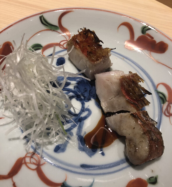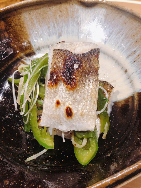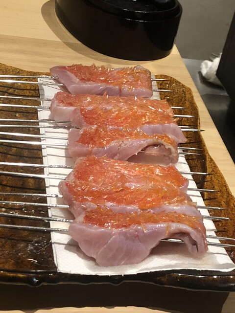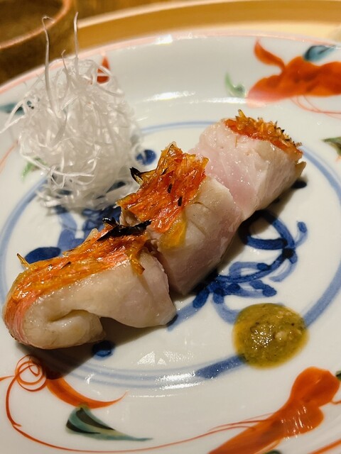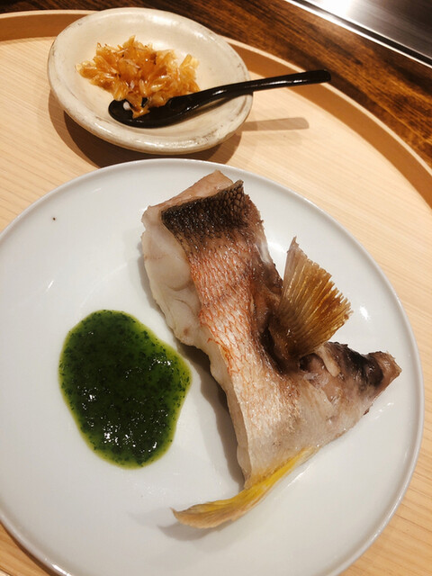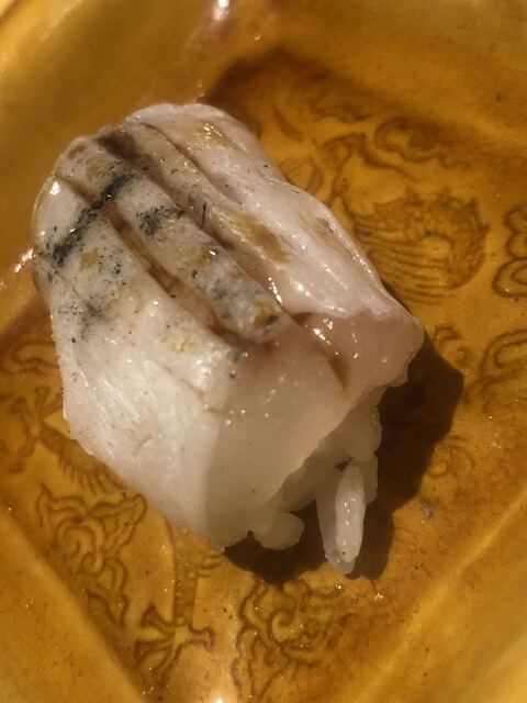 金目鯛の炭火焼き。スペシャリテです。松笠を炭火で仕上げているので、他店の太白回しかけと比べてしつこく無い