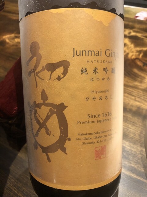 藤枝の銘酒です。40度のぬる燗でいただきます