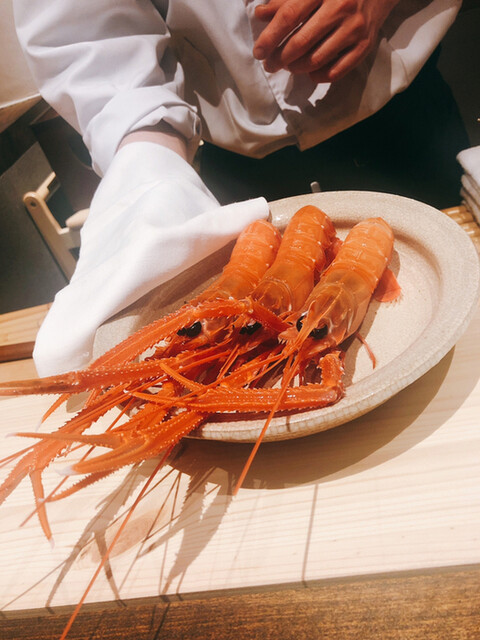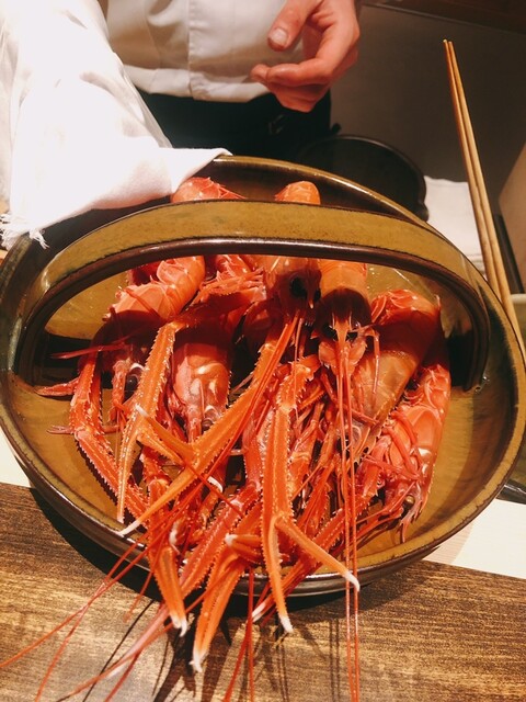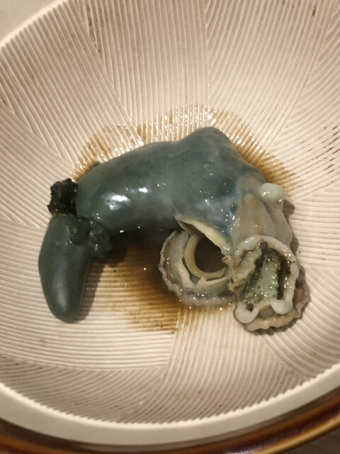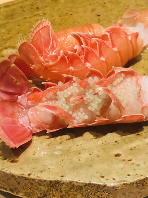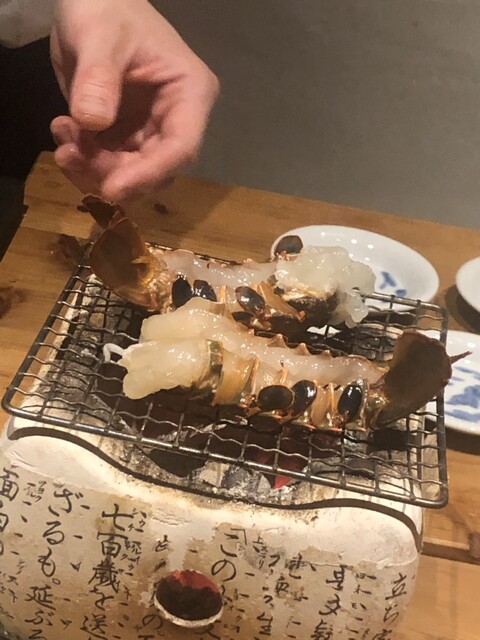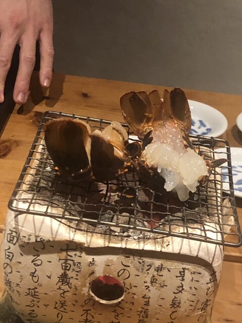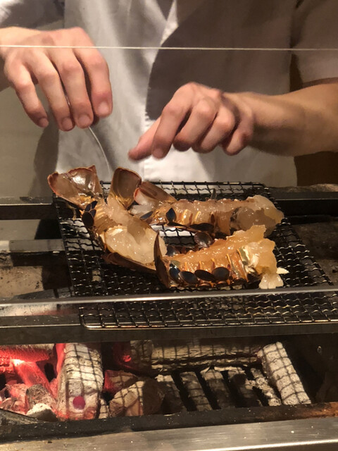こちらで何回となくいただいた伊勢海老の炭火焼きですが、今夜の仕上がりがNo.1でした。個体の差なのかな?いやいや洗練に洗練を重ねた成果でしょ\(//∇//)\