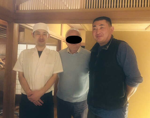 早目に解錠していただき、温石の庭を経由して奥から入室。カウンターの角を利用して三名が並びました。