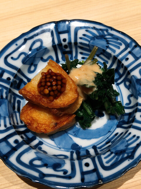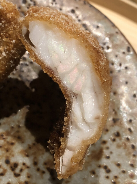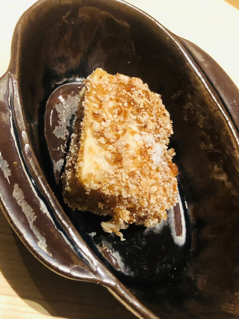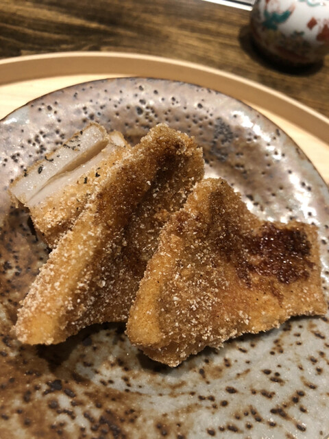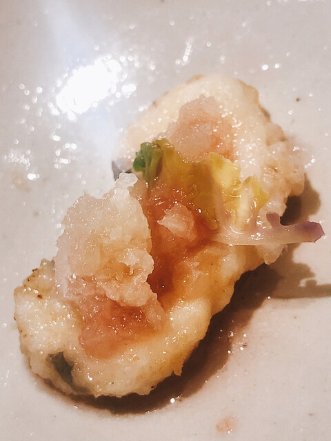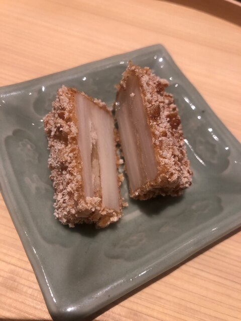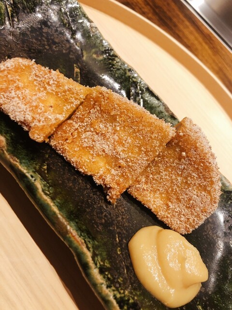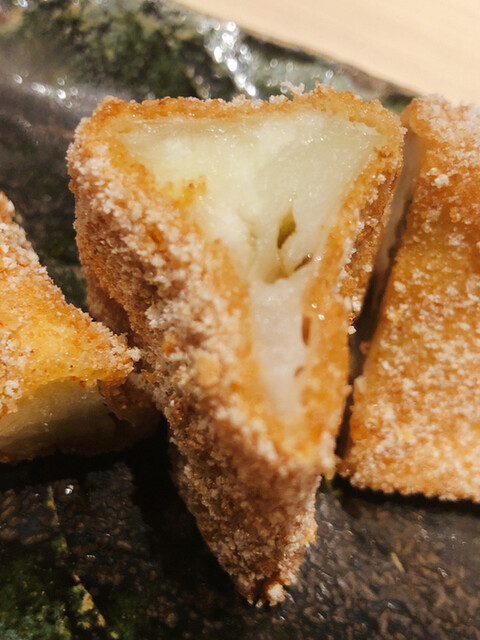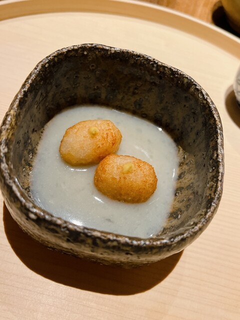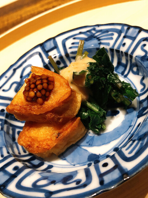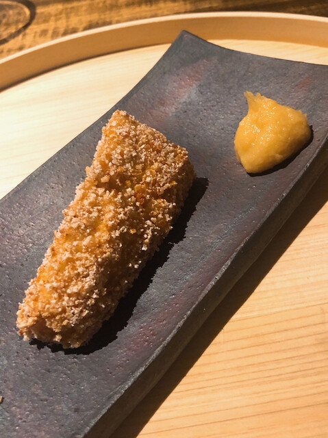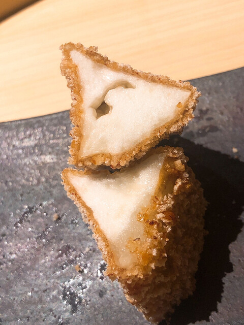 アサハタレンコンの揚げ真薯。お出汁で割った白味噌餡が抜群にウンマイ\(//∇//)\