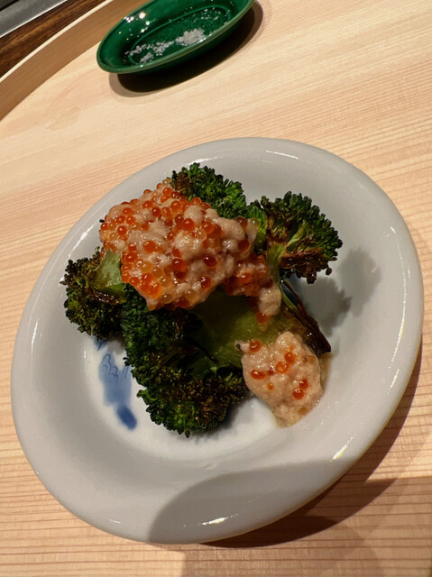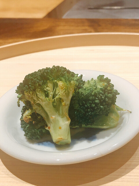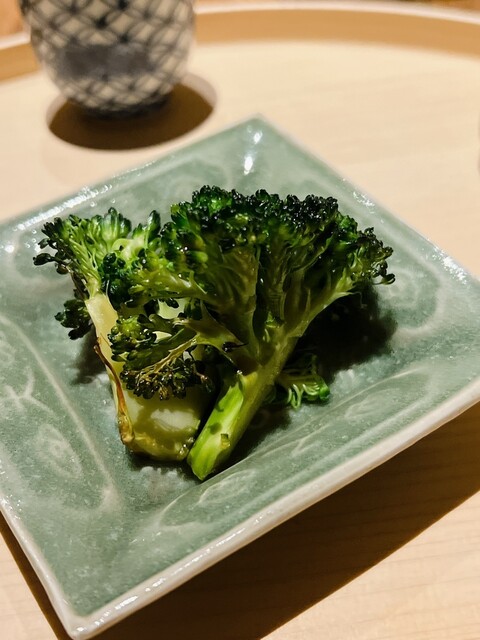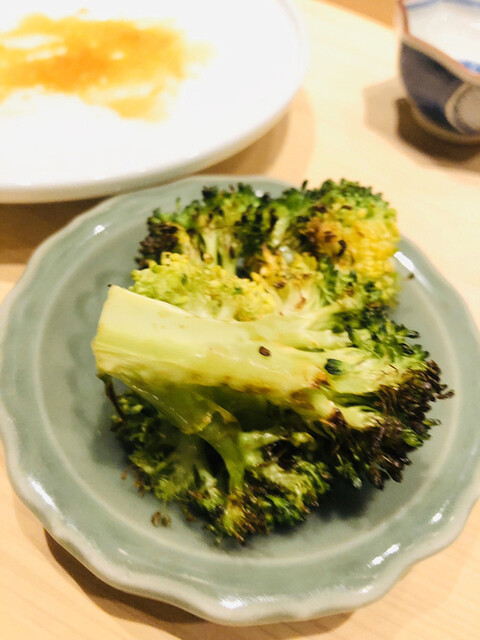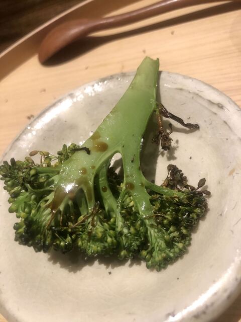 箸休めのブロッコリーの炭火焼き。地味が濃ゆい!