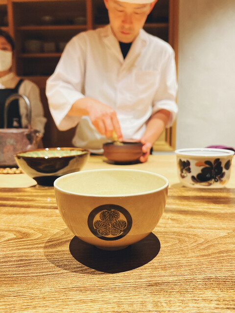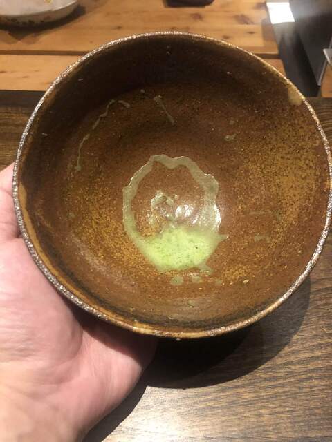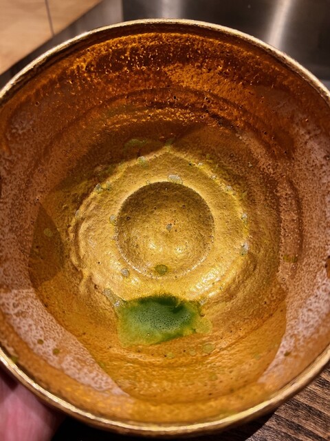 〆のお抹茶です。淹れる際の静寂な空間が好きです。お話を続ける礼儀知らずの叔母さまには残念\(//∇//)\