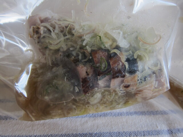 鯵の砧巻き。胡瓜から酢漬けした大根にアップデート。胡瓜巻きより正直、口に合いましたヾ(≧▽≦)ノ