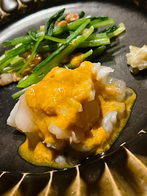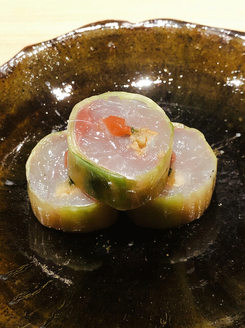 これは恐らく初体験。加えてこれもお初の鮟肝ポン酢。鯵の胡瓜巻きも大根の砧巻きにアップグレードされれば、伊勢海老の味噌和えも進化を重ねてその真価を問う、もはや完成系ともいえる仕上がり。