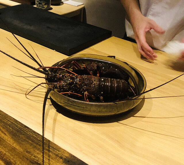 伊勢海老の炭火焼きの味噌乗せ。以前から供されてきましたが、今夜の仕立てが完成系かも(^◇^)