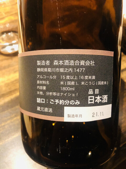 ・森本:純米吟醸原酒、もったいない卸し、