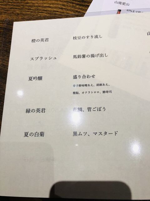 ラッコは喉が渇いたので、珍しくジンジャーエールをお願い。その後は三名で八種類の日本酒を嗜み、唯一無二の都内では絶対に味わえない心地良い空気感に漂います。