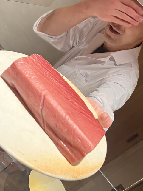 焼津沖、おそらく定置網かな、何十本も揚がったなかで漁師さんのお眼鏡にかかった三本だけ、サスエ前田さんに卸すために船上神経〆した逸品。