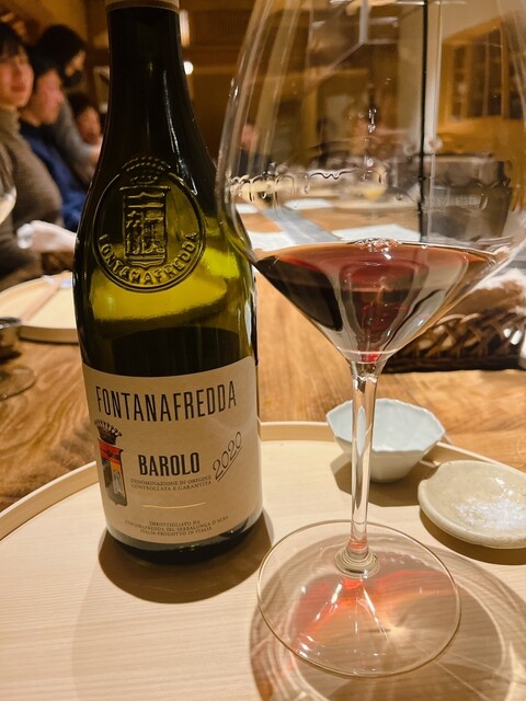 親ガモと小ガモの胸肉と腿肉の親子煮をいただき、ただただ深い溜息。合わせるのはFontanafreddaのBarolo 2020年。まだまだ若いネッビオーロですが、むしろ繊細な鴨の滋味を引き立てるには最適な選択でした。