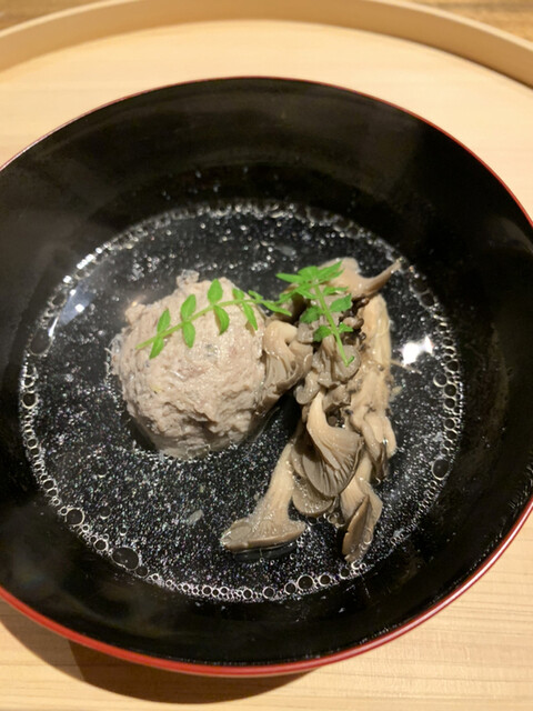 白甘鯛のお椀。 資源保護のため、しばしの禁漁期間を明けての白甘鯛。 その身の繊細さを損なわないデリケートな吸い地と、華やかさを添える柚子の香りが素晴らしい。