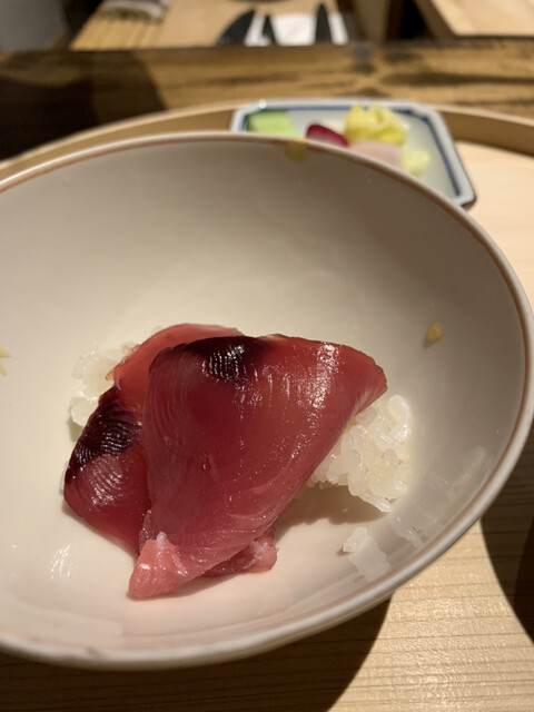 どーん!ここへ来て、平鯵の漬けごはん。 きれいですねぇ(^^) 元々は、それほど味のある魚種じゃないそうですが、前田さんの仕立てとこの時期ならではのタイミングでとで、絶品の小丼に♪