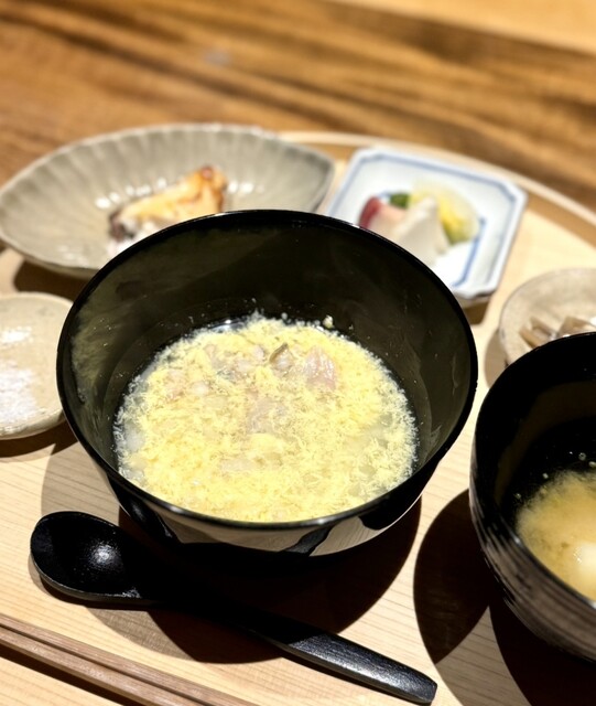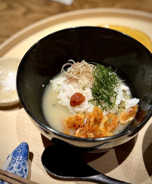 初モノという蛤の玉子雑炊。 蛤の走りって、今なんですね。優しいお味の雑炊。 これも染み染み美味しい。