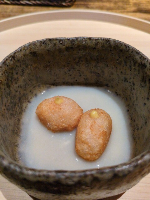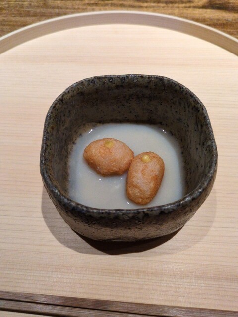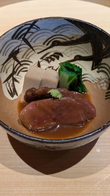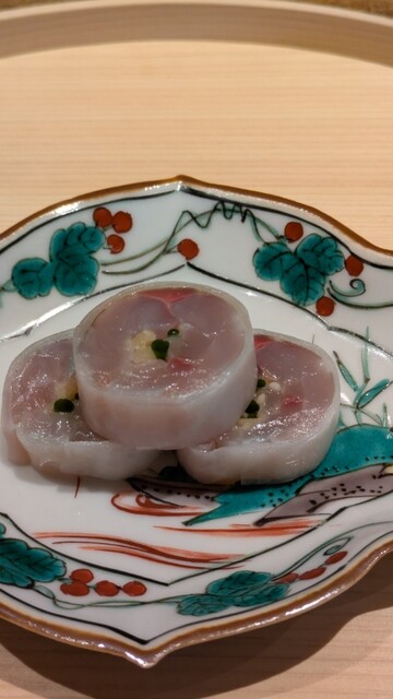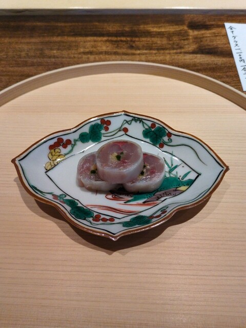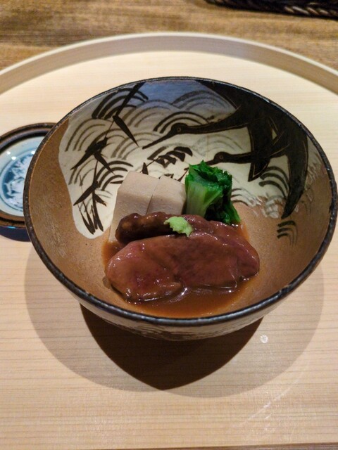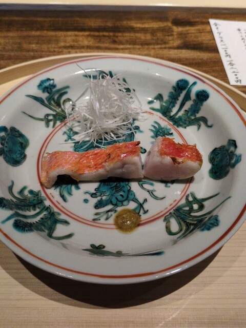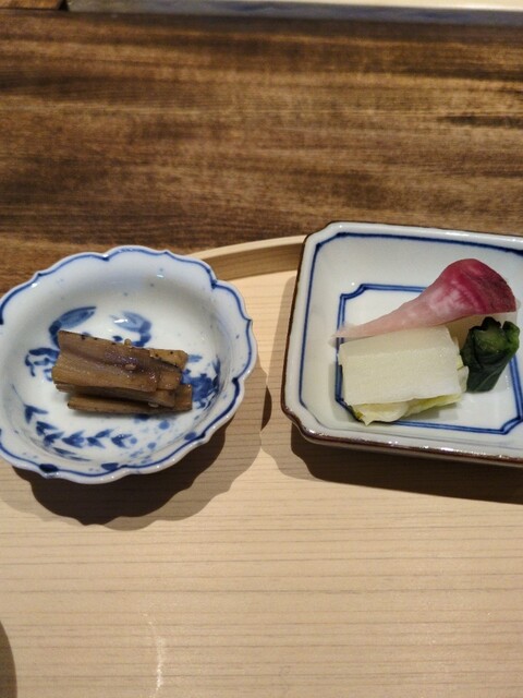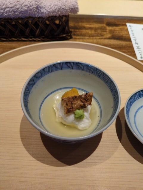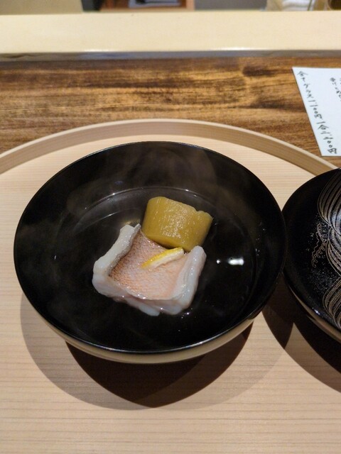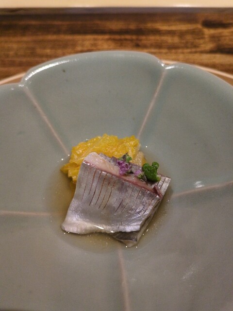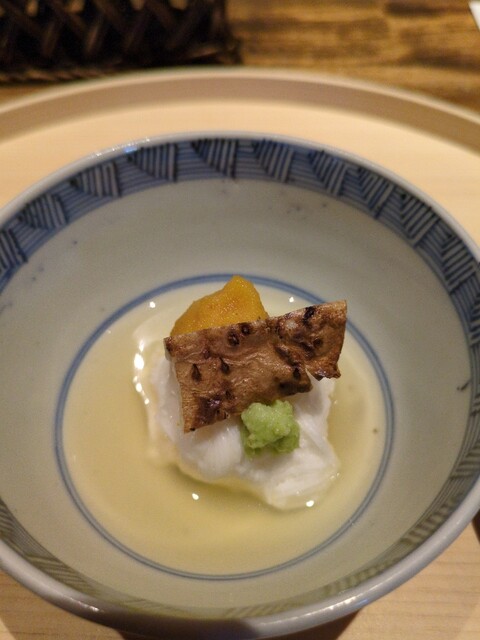 特に印象的だったのは、酸味の中に鯵の旨味が花開く鯵の砧巻き、平鯵と薄味の魚出汁で煮出した白菜の甘みが混ざり合う平鯵の蒸しもの、絶妙な加減で火入れされた白甘鯛に柚子の仄かな香りと薄味の出汁が食欲を引き立てる白甘鯛の椀、炭の香りの上で身の甘みと