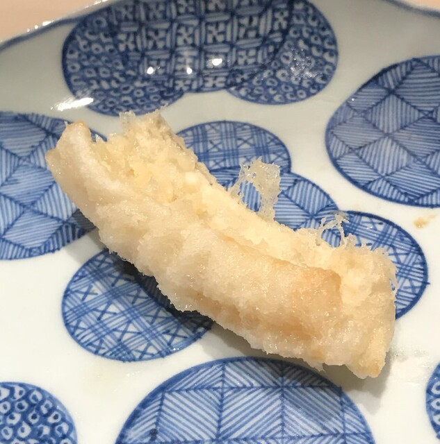 天ぷらの衣は黄金色で、素材と一緒にしっかり食べる感じ。
