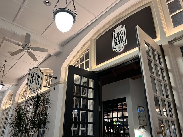 マレー半島の大農園をモチーフにしたという素敵な高級ホテルのバーですが、ドレスコードもなく子どもも入店できるカジュアルスタイルなので、日中でも混んでいますね。オーダーはもちろんシンガポールスリング。