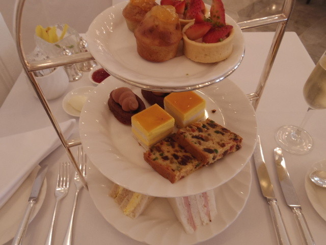 3段にはサンドイッチやプチケーキや焼き菓子などがのっています☆