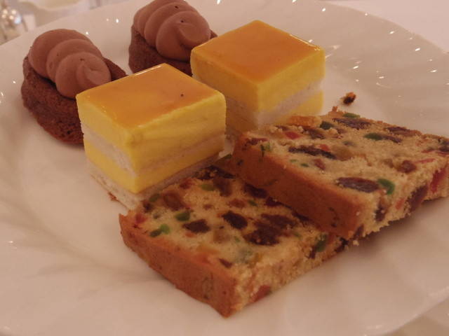 ドライフルーツがいっぱい入ったパウンドケーキにマンゴーのムースに