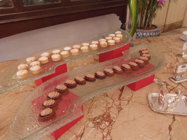 ビュッフェテーブルにはプチケーキ、スコーン、フルーツなどがずらり!