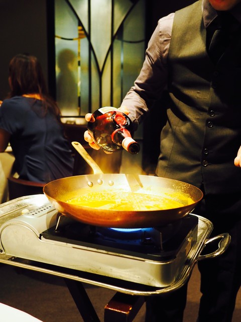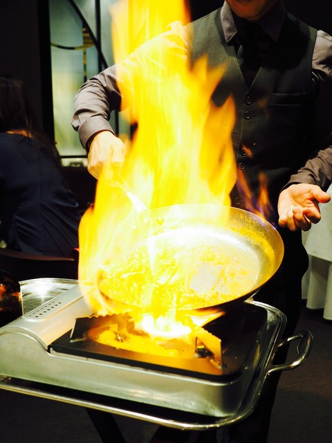目の前で作って頂きます。炎の大きさが少し大胆過ぎます。(笑)