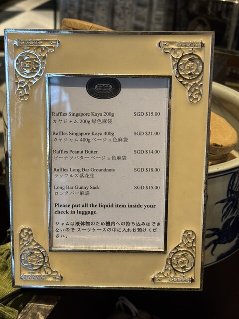 帰りにホテル内のラッフルズブティックでカヤジャムとパイナップルタルトを買いました。こちらのカヤジャムは本当においしいです。