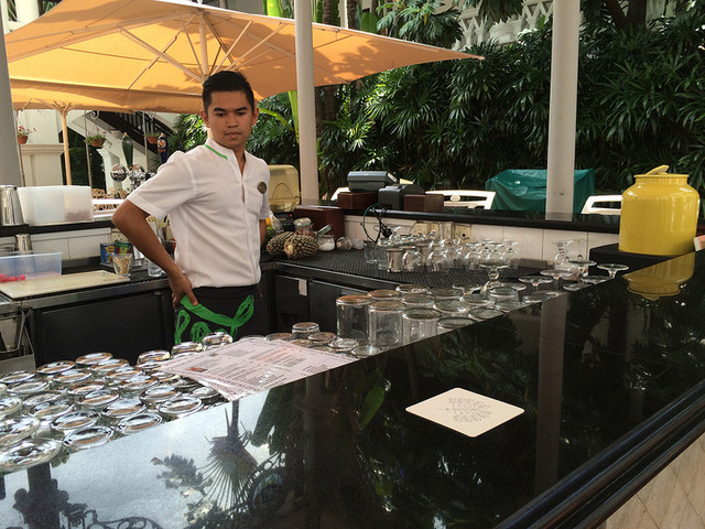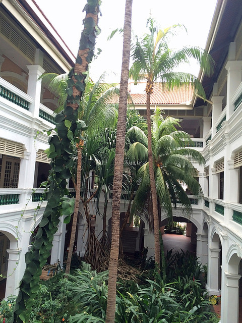ラッフルズホテルの中庭に位置する野外のカクテルバー。