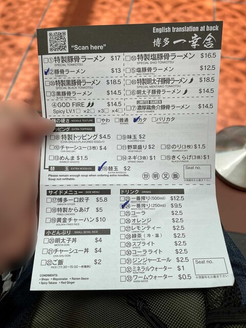 • HAKATA IKKOUSHA - 豚骨ラーメンS$13(2022/9)