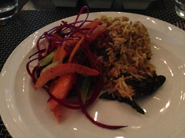 masala vinaigretteのせいか、インド色強い味のサラダ。野菜もかたい。