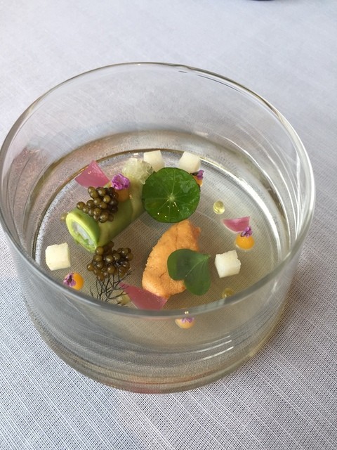 エスプーマをスープの上層に配置してあります。キノコ出汁が良く出ていて美味しい(*´ω`*)